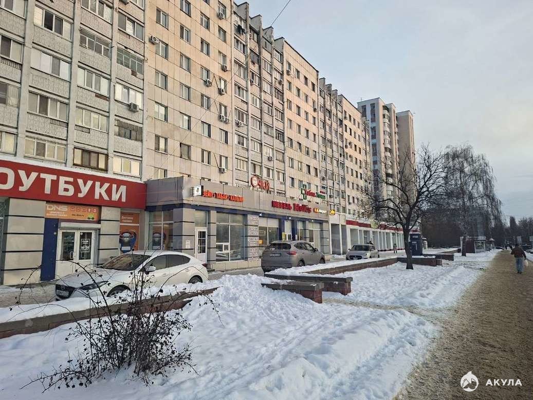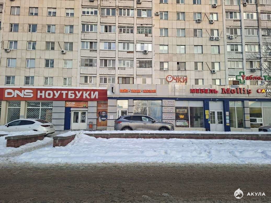 Торговая площадь на первой линии, отдельный вход, фасад под рекламу, большая парковка вдоль дома, сильный автомобильный и пешеходный трафик.