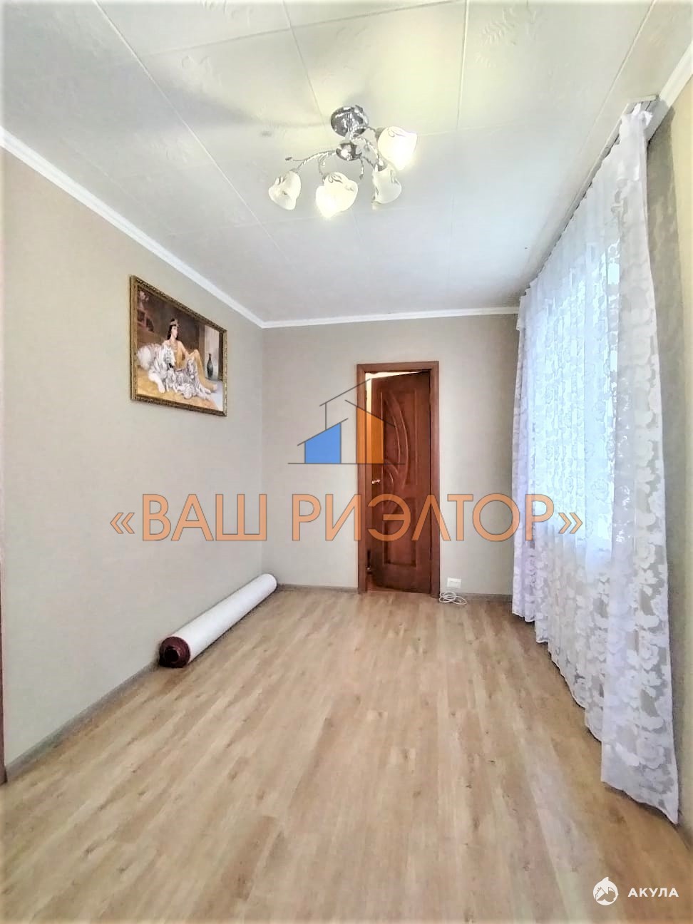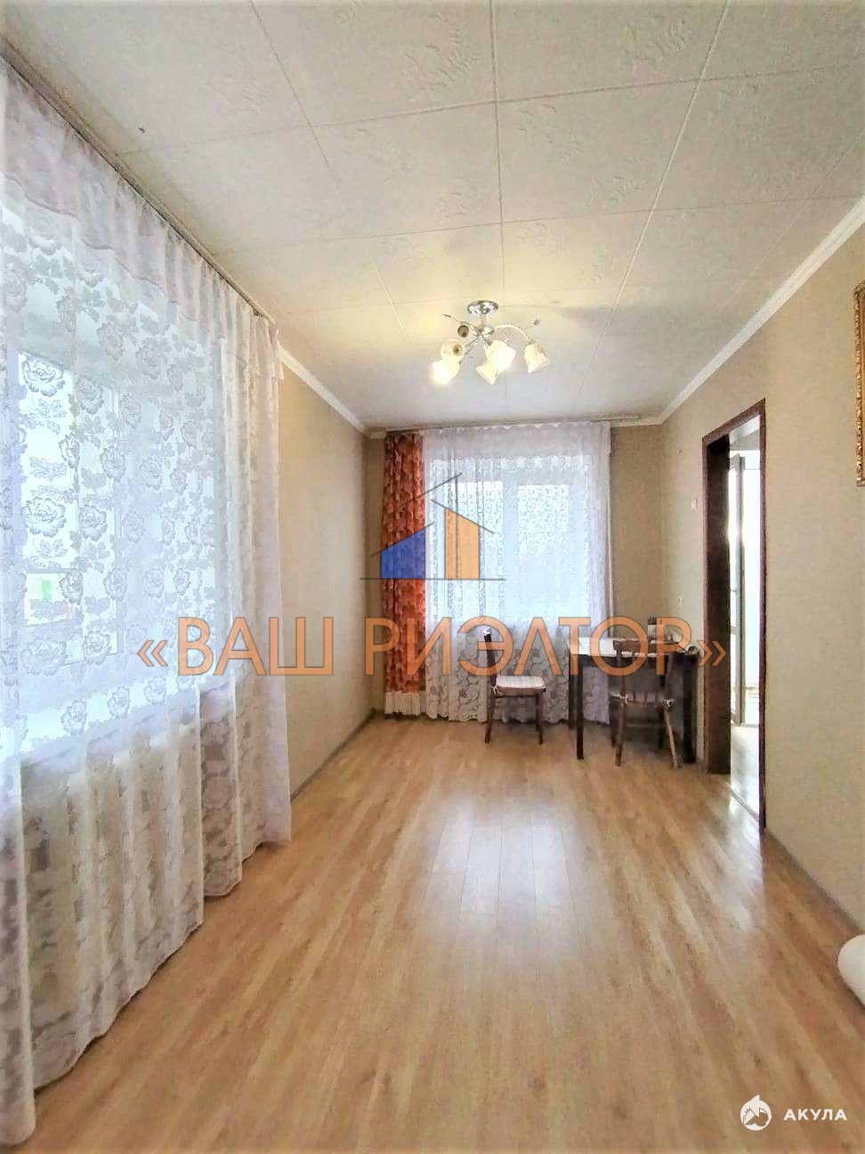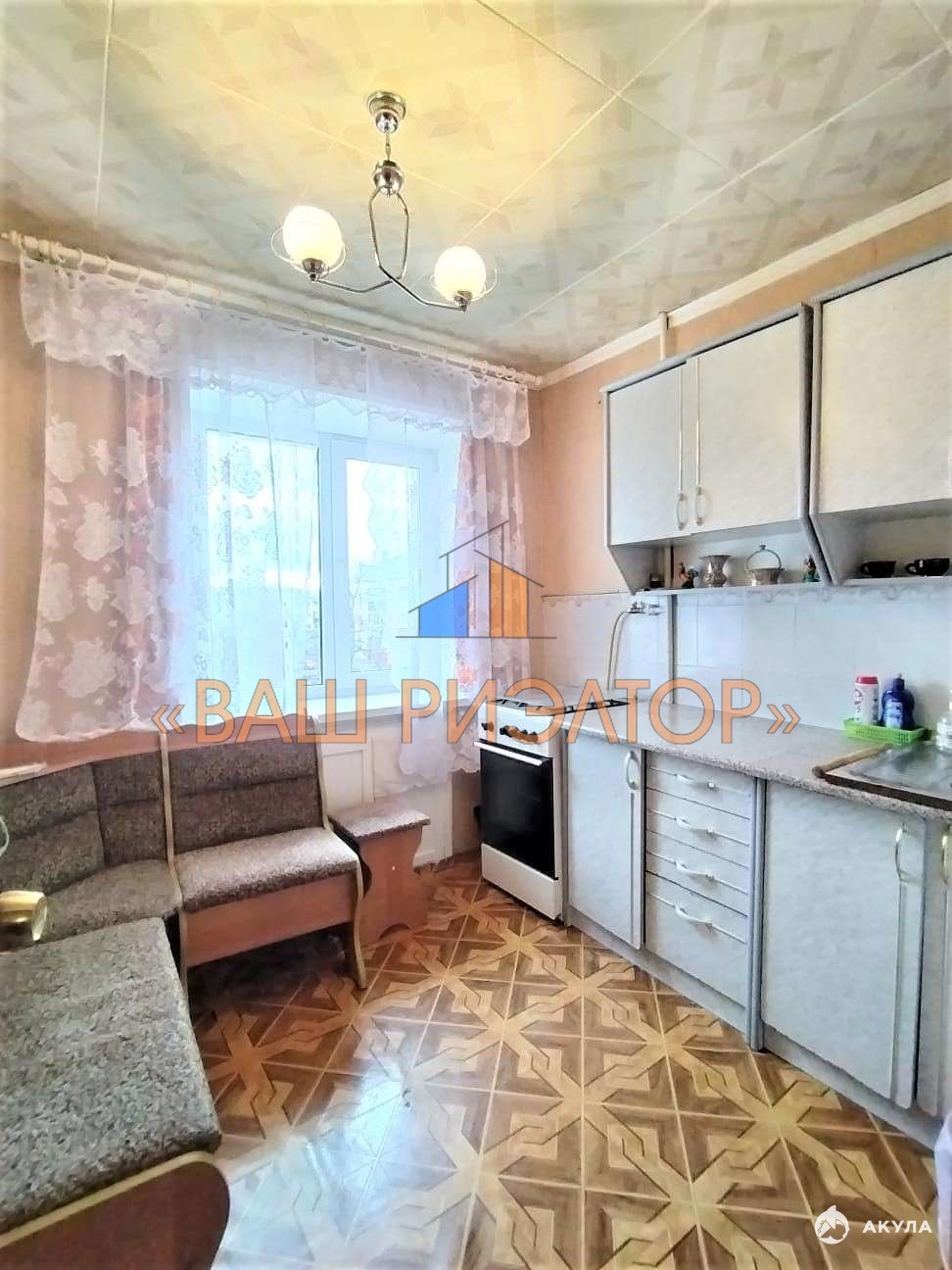 Напольное покрытие: ламинат по всей квартире, на кухне — линолеум.