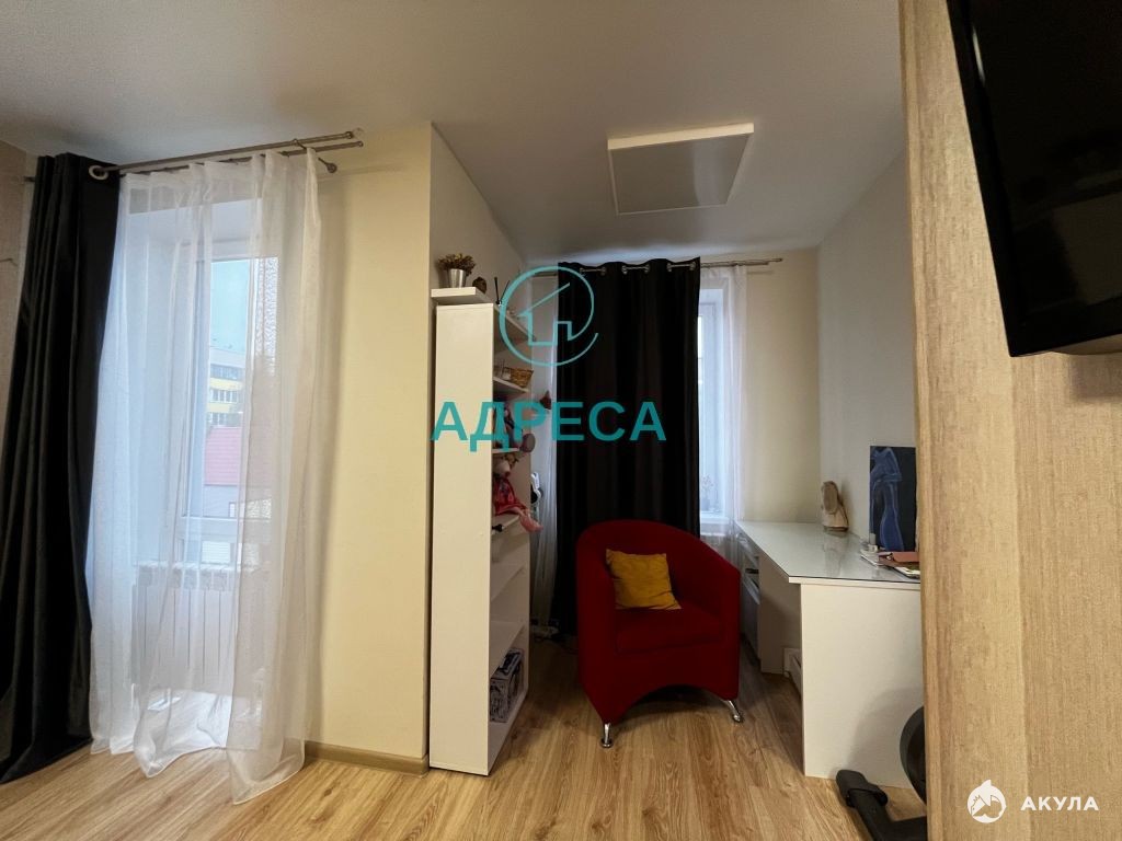 Квартира с современным и качественным ремонтом. В комнате на полу уложен дорогостоящий качественный ламинат, натяжные потолки, оштукатурены и выровнены стены и оклеены обоями, санузел совмещенный, полностью отделан плиткой.