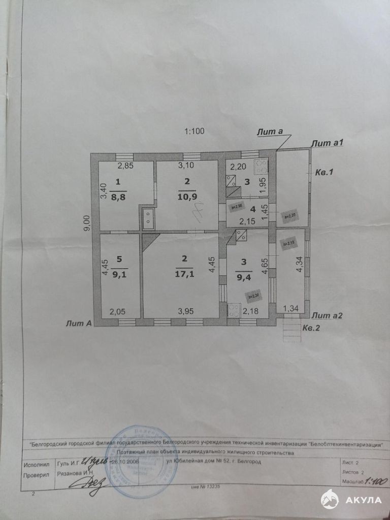 - Площадь участка