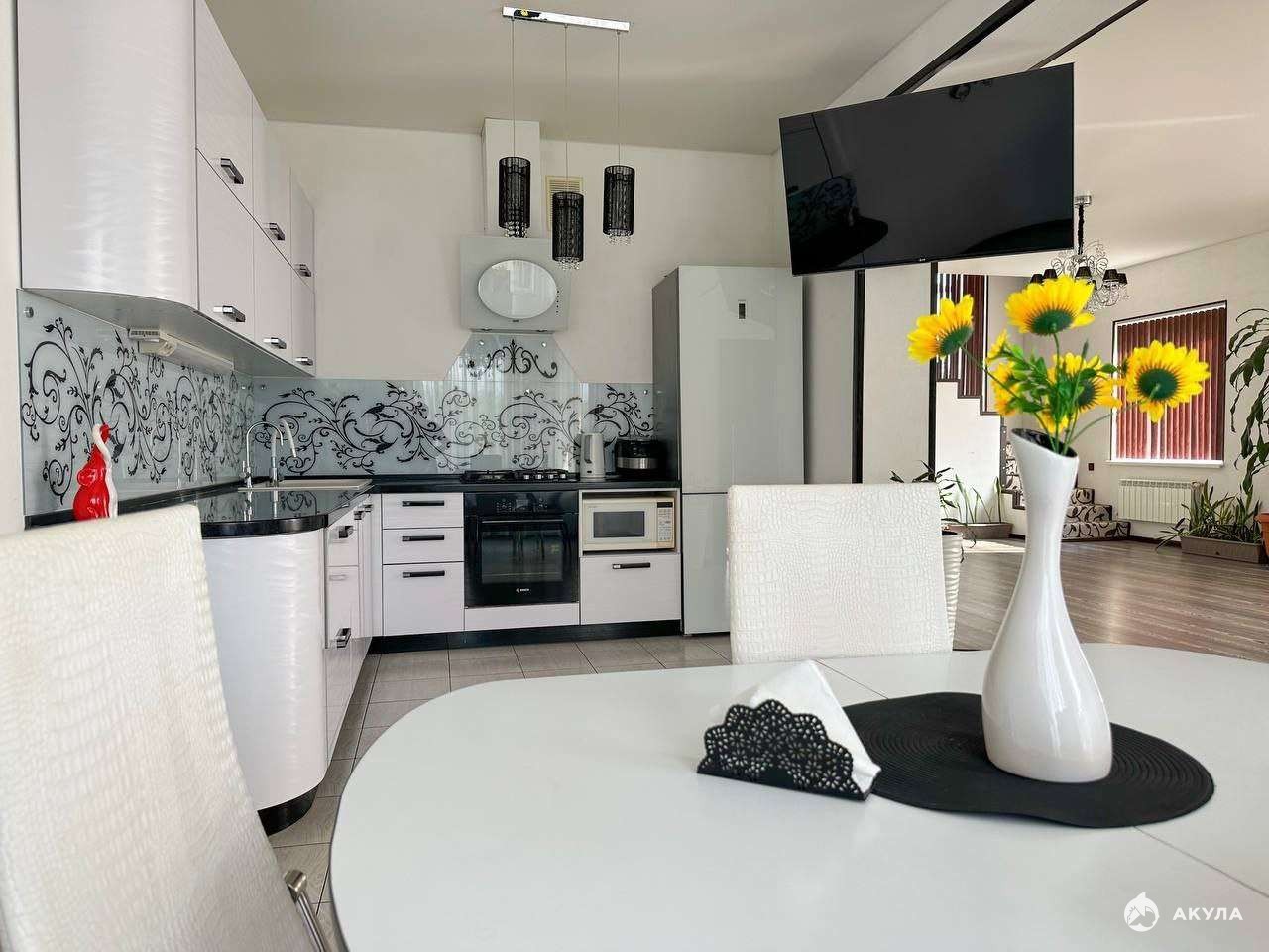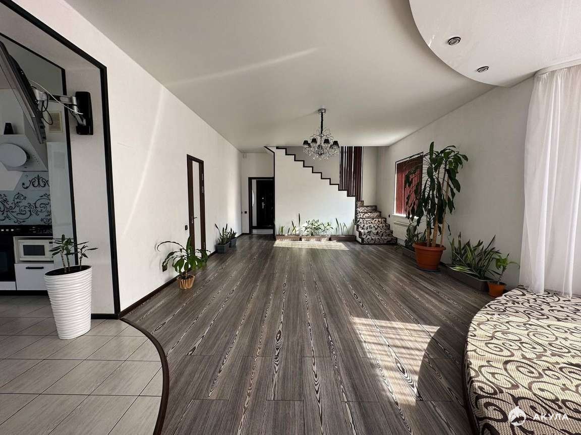 Общая площадь дома 170 кв.м, планировка продуманная и функциональная.На первом этаже располагается большая гостинная, с кухонной и столовой зоной, ванная комната.Так же, на первом этаже в вашем распоряжении будет шикарная парная на дровах.На втором этаже три изолированные спальни, ванная комната.Отдельной комнатой выделена функциональная гардеробная, что безусловно порадует хозяйку.Для вашего удобства так же есть балкон, с видом на зеленую зону.Дом предусматривает два входа\выхода.Ремонт и дизайн дома современный, яркий, запоминающийся, новый владелец обязательно это оценит.В конструктив дома так же входит просторный, отапливаемый гараж и изюминка этого дома - мастерская, для любых творческих идей.