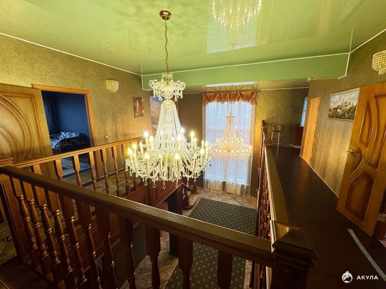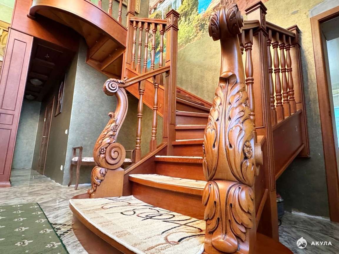 Произведена качественная отделка. Все стены выровнены и оклеены современными обоями. В комнатах двухуровневые натяжные потолки. Эксклюзивная, изготовленная из дуба лестница выполнена вручную мастерами-краснодеревщиками. Установлены окна ПВХ тройной стеклопакет энергосберегающие, трубы ПВХ, итальянские радиаторы, качественная входная дверь.