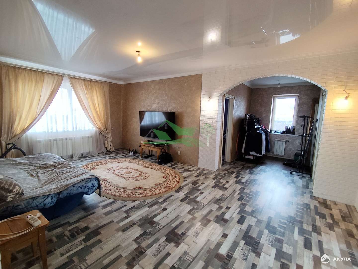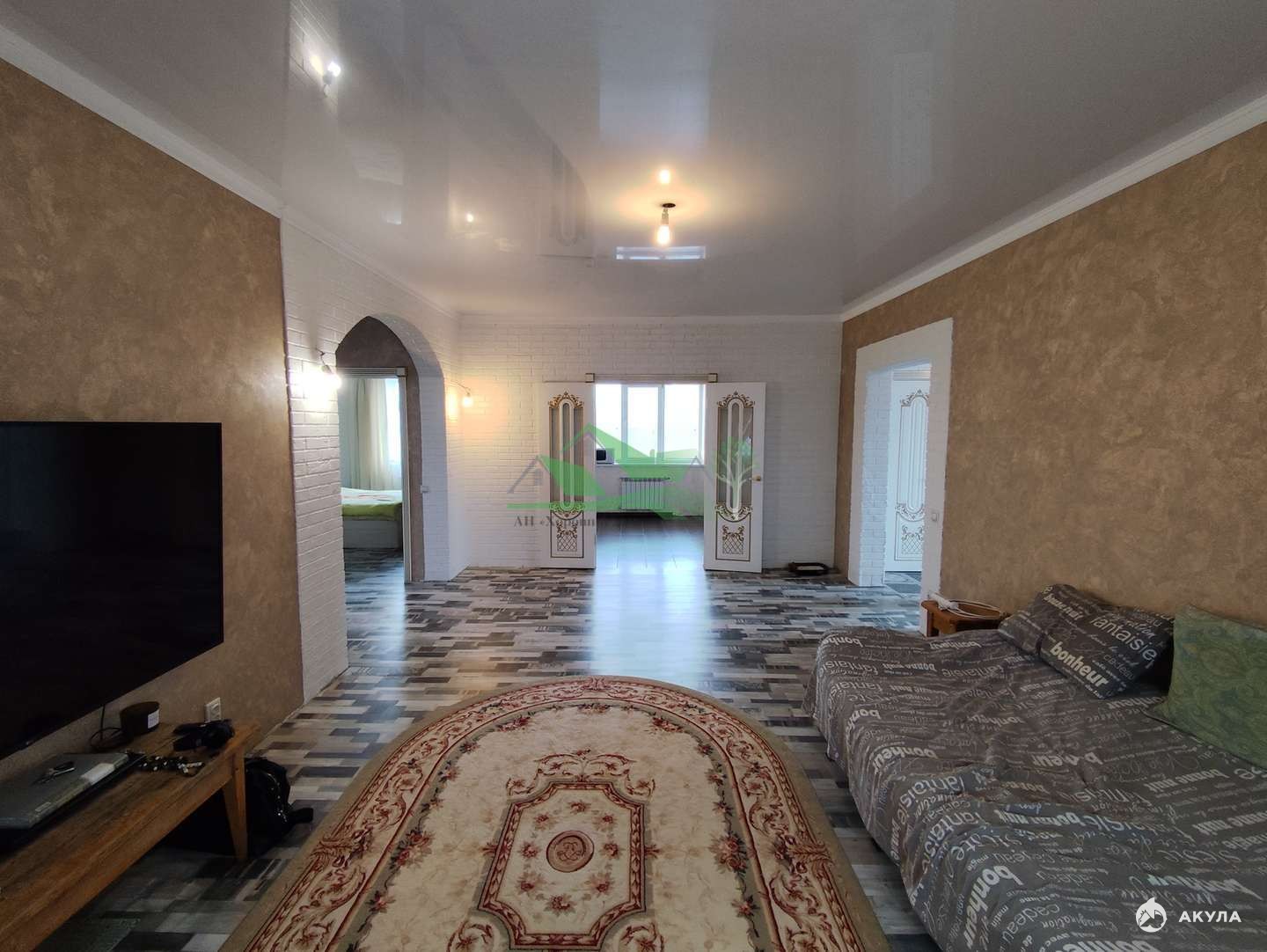 Внутри: входная дверь высокого класса с кованой решеткой; межкомнатные деревянные двери; натяжные глянцевые потолки; декоративная штукатурка стен; кухня с клинкерной плиткой; санузлы с индивидуальным керамогранитным дизайном; полы ламинат и керамогранит. Ванная с качественной сантехникой и душевой.