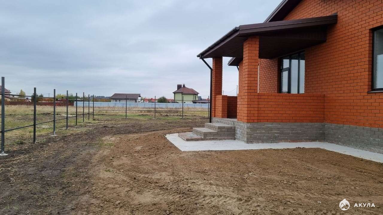 - Дополнительные удобства: Имеется ограждение территории, предусмотрено защитное покрытие фундамента (отмостка) и удобный навес.