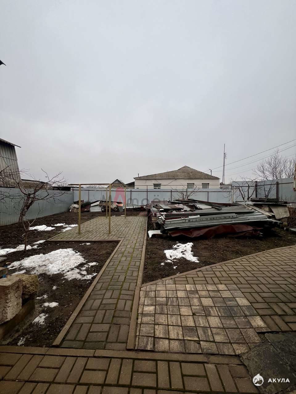 На территории участка гараж из кирпича, во дворе и придомовая территория уложена плиткой.