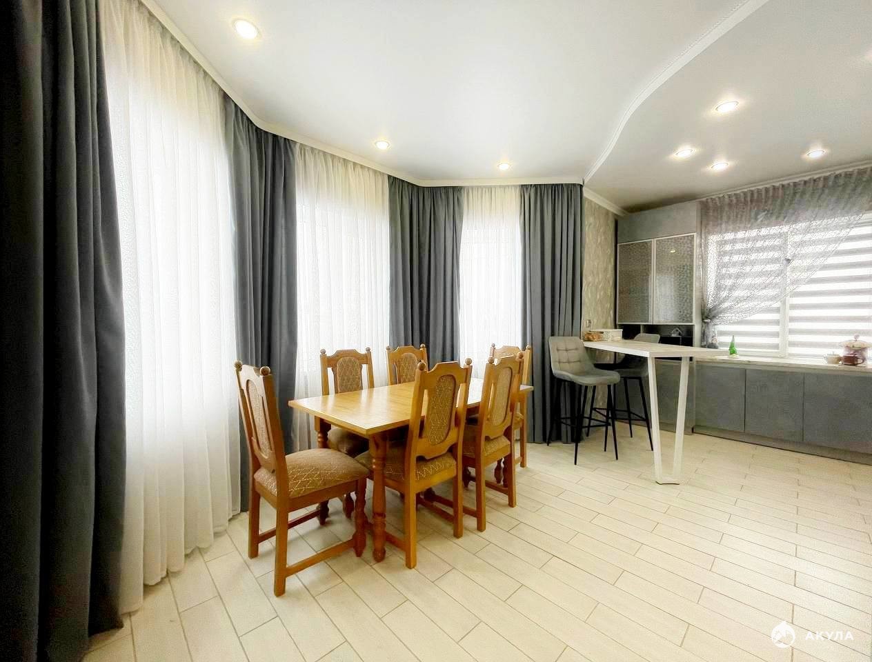 Внутри сделан качественный современный ремонт. Санузел отделан плиткой. Теплые полы по всей площади дома, кроме гардеробной. Натяжные потолки с точечным освещением. Добротные межкомнатные двери.