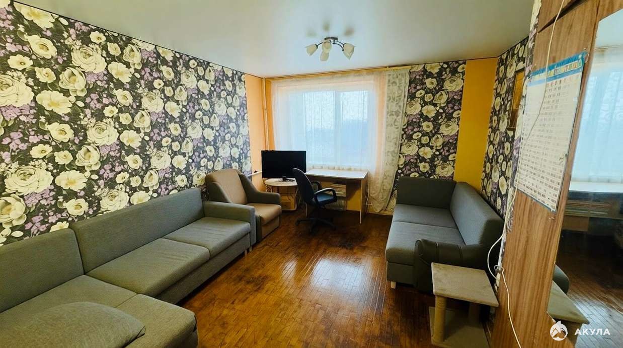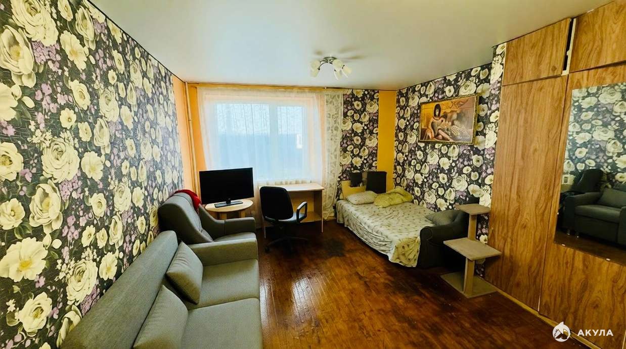 Состояние комнаты: В комнате стены выровнены, косметический ремонт, натяжные потолки, паркет, с/у раздельный. В комнате остаётся диван, стол, шкаф-купе.
