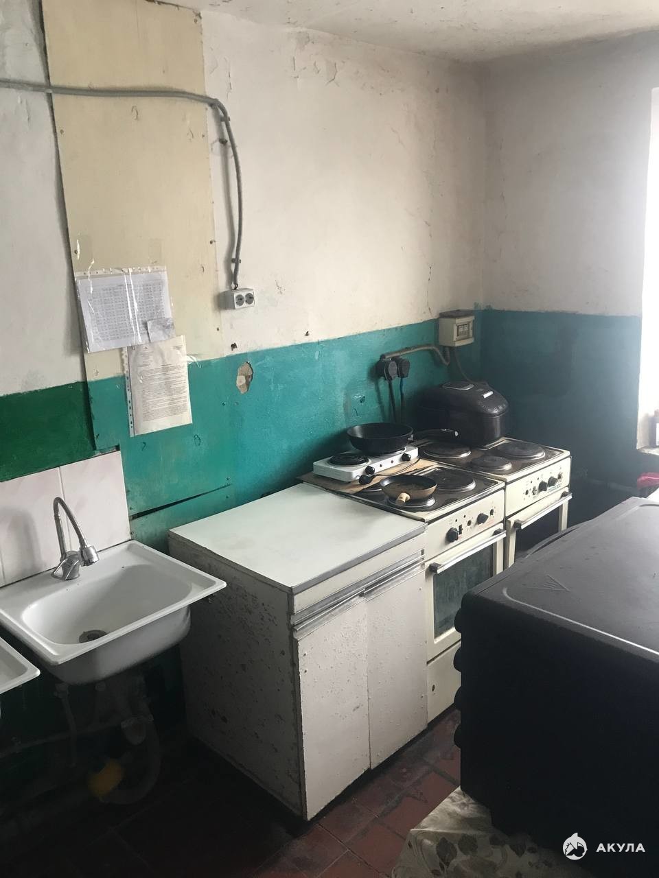 Общая кухня с балконом и своим местом для приготовления пищи.
