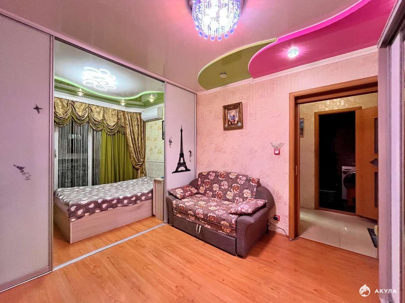 - Высокие, натяжные потолки;