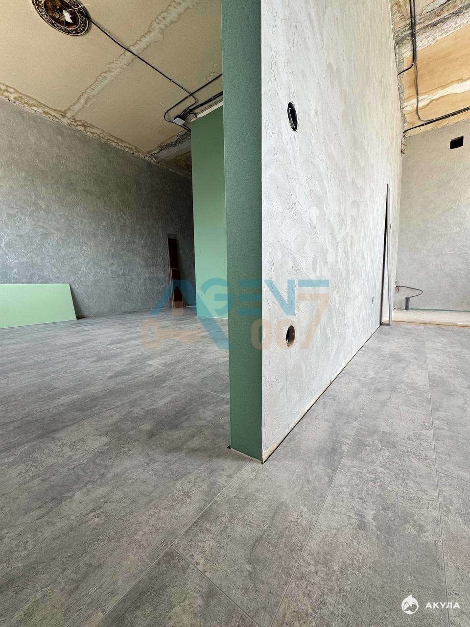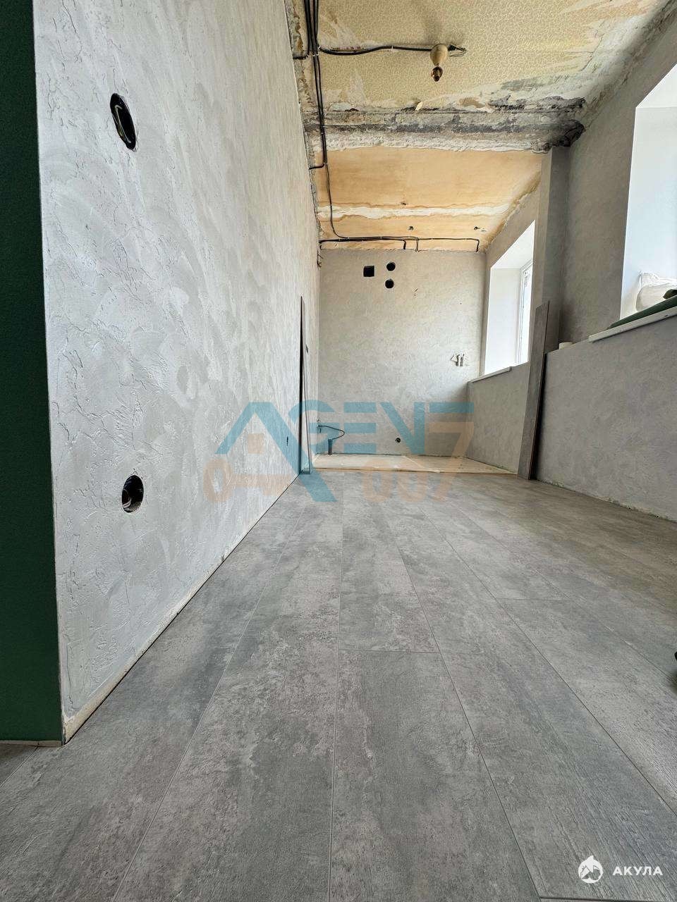 Качественный ремонт в современном стиле: плитка в санузле, декоративная штукатурка на стенах, керамогранит на полу.