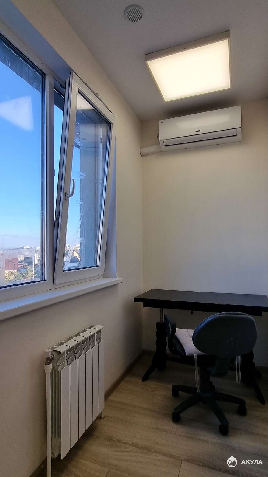 Просторная комната располагает к творческому отдыху и вдохновение новым замыслам. Окна, открывающие прекрасный вид на городские просторы, приглашают полюбоваться красотой вечернего заката или утренним пробуждением улиц. Санитарная зона отделана плиткой, сочетающейся с керамогранитом пола, уложенным специальным образом, облегчающим уход за помещением.