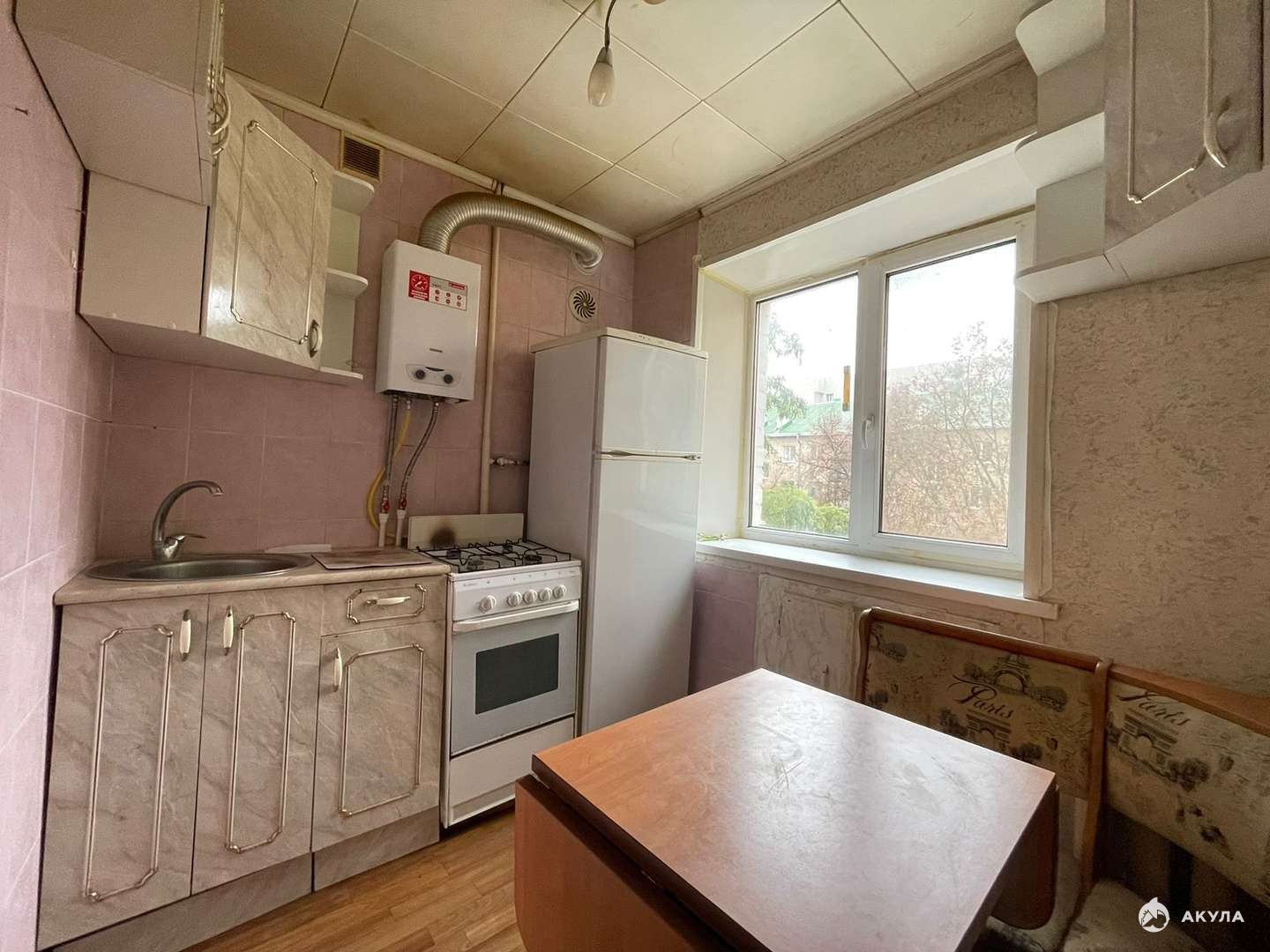 -окна ПВХ, выходят во двор, балкон остеклен и обшит деревом