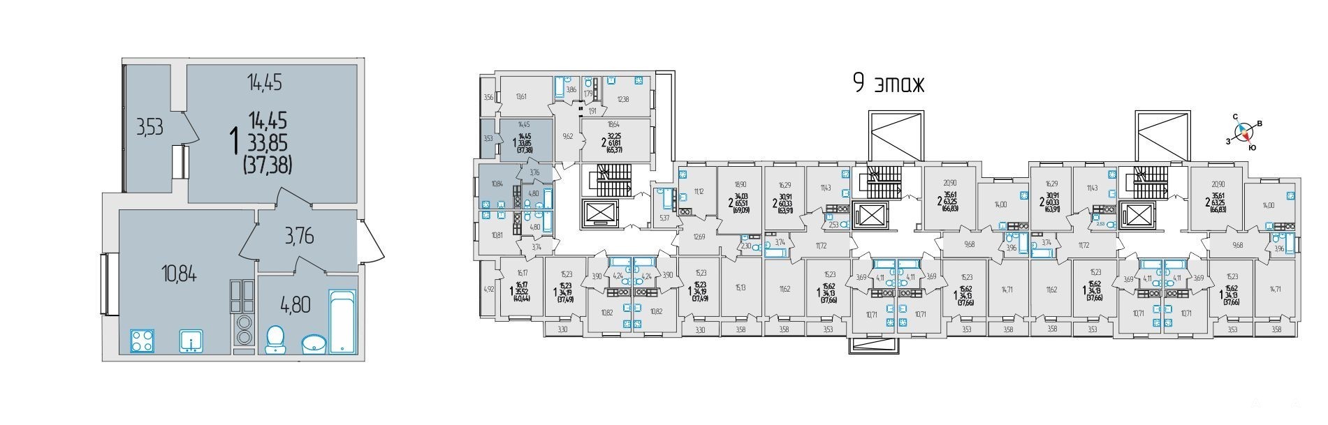 - 14.45 м²