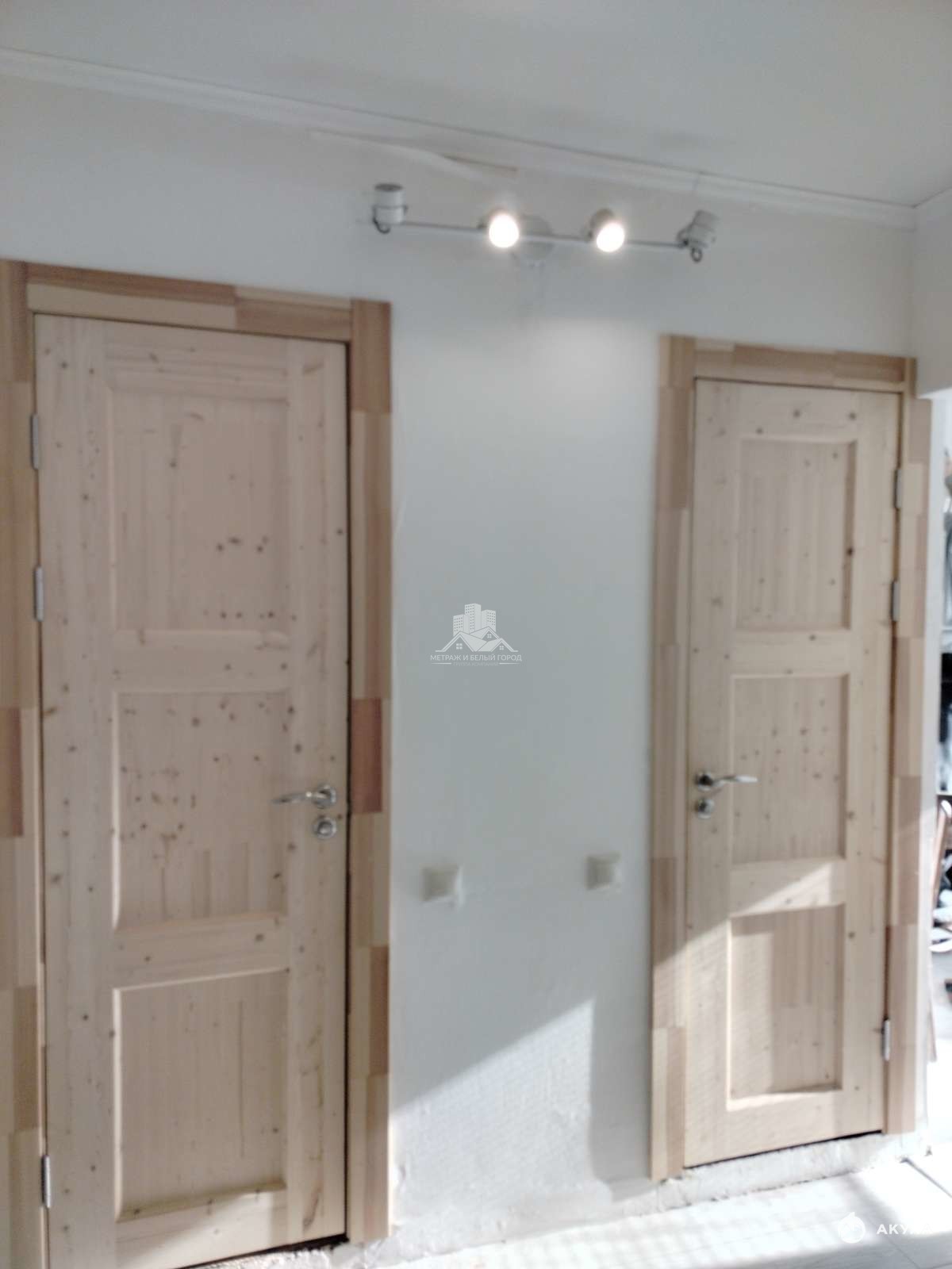 Заменены межкомнатные двери на новые деревянные под покраску.