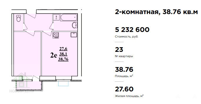Евродвушка с балконом 38, 76 кв.м.