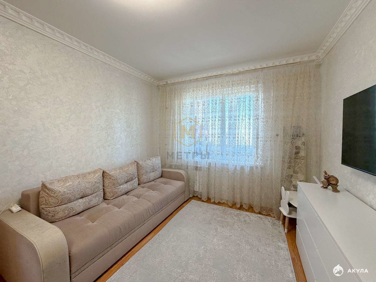 Новым собственникам остается кухонный гарнитур, прихожая, светлый диван в комнате.