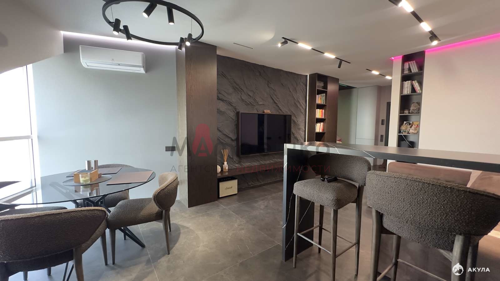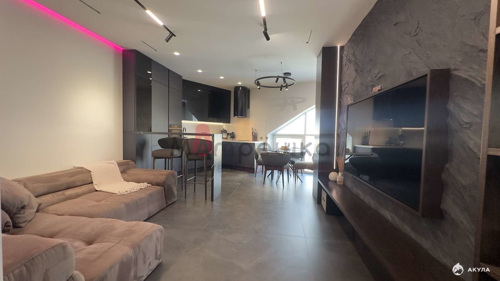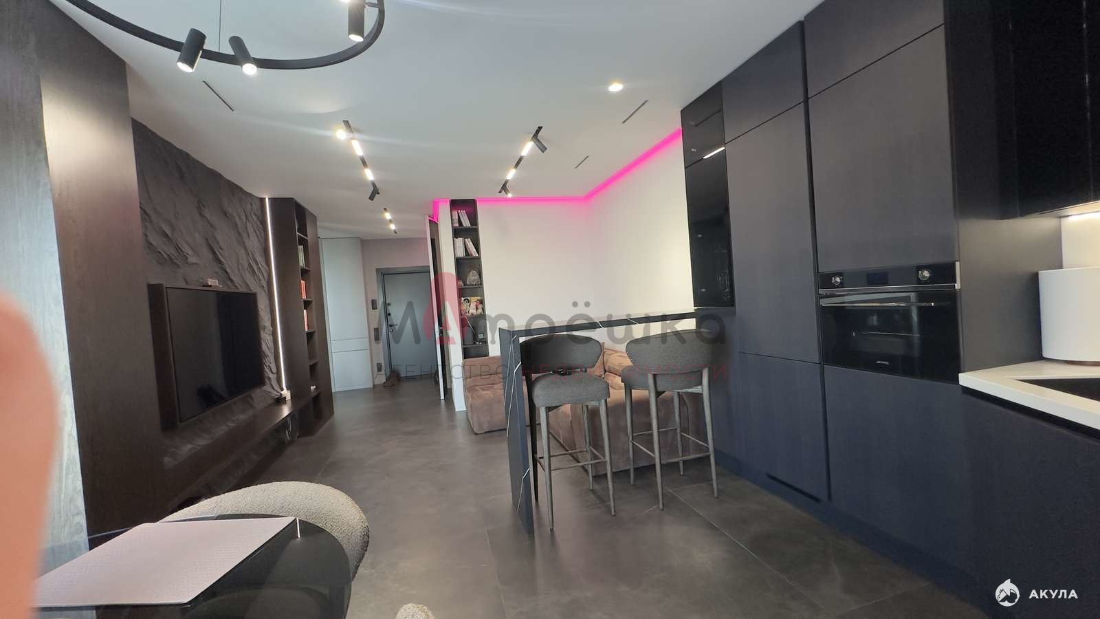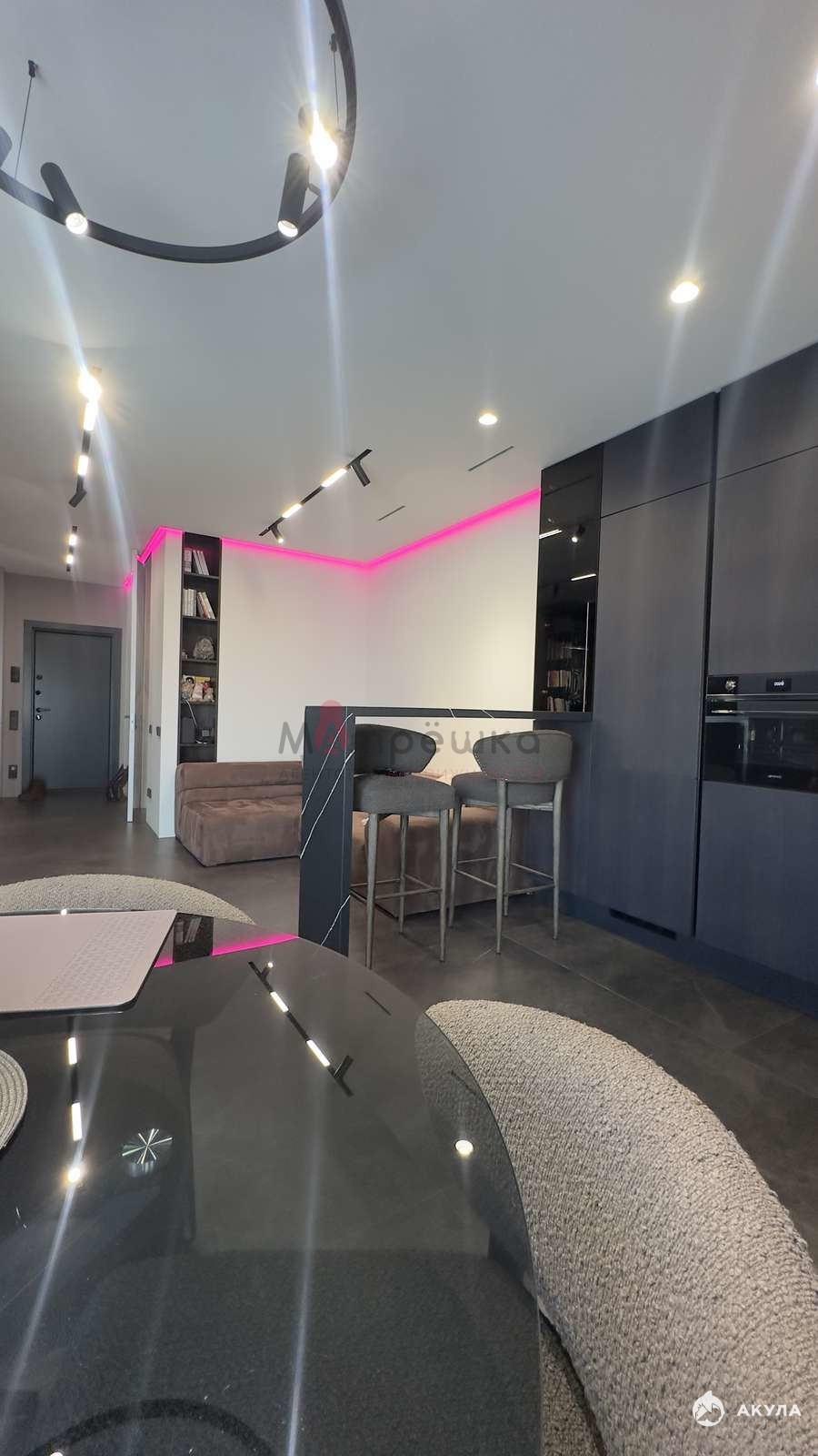 Ремонт делался с нуля для себя, используя дорогие материалы в отделке. По всей площади квартиры система теплый пол. С разделением по зонам, с возможностью регулировки температуры. Крупноформатная плитка на стенах Porcelanosa (Испания), так же этой фирмы крупноформатный керамогранит на полу и вся сантехника. Инсталляция в гостиной из шпона натурального дерева и камня ручной работы ( красивый эффект лавовой стены). Батареи скрыты близи окон в полу, что не утяжеляет и не портит основной вид, но при этом дает тепло. По всей площади квартиры контурная подсветка с пультом управления ( возможность менять цвета). Так же в квартире встроенная система принудительной вентиляции на тех этаж.
