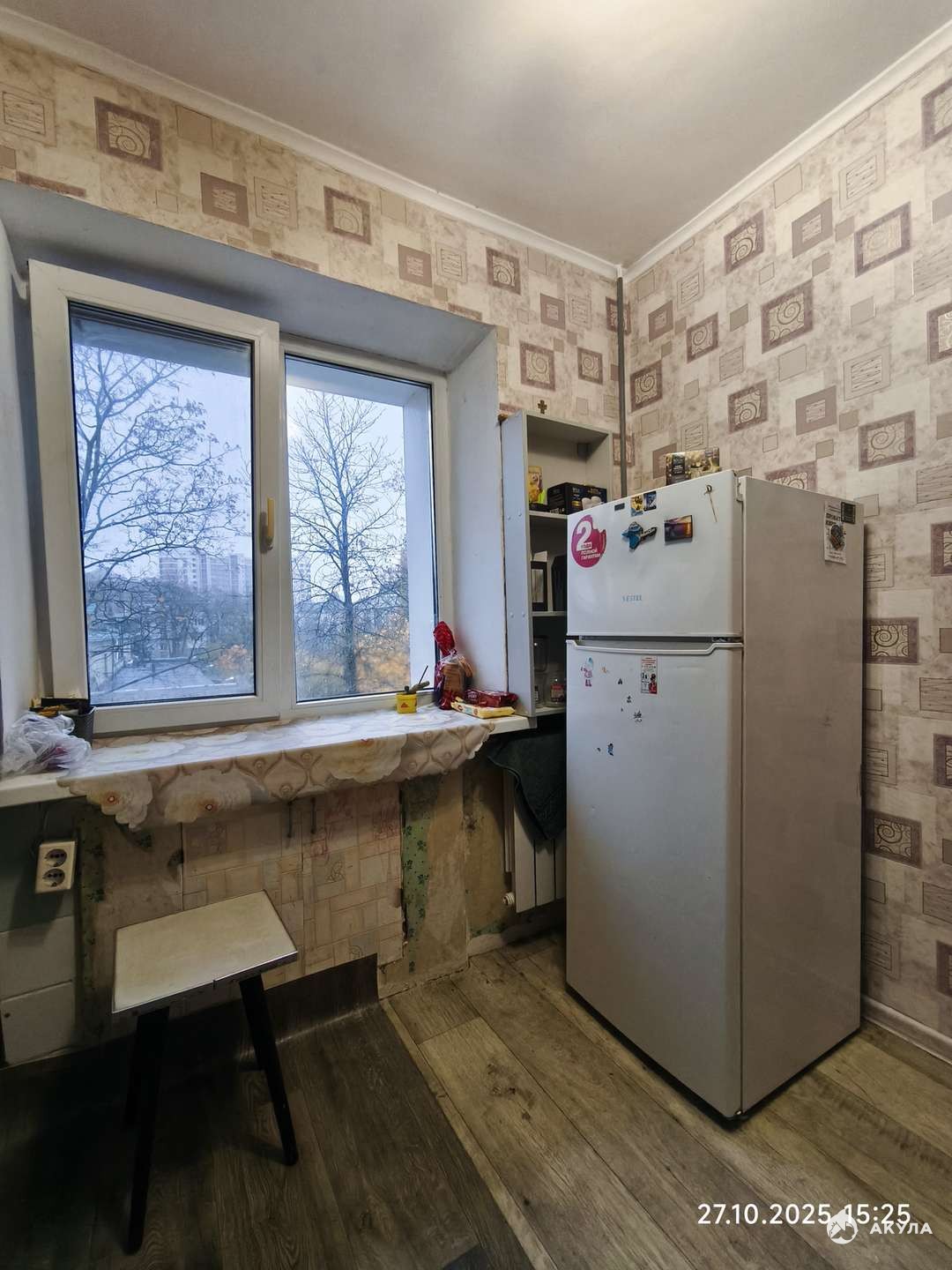 Вид из окна красивый, на детский сад и солнечную сторону.