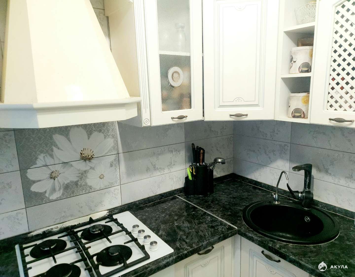 Установлен кухонный гарнитур в светлых тонах. Установлена газовая автоматическая колонка, которая отвечает за постоянную подачу горячей воды. Качественная металлическая дверь обеспечивает отличную шумоизоляцию.