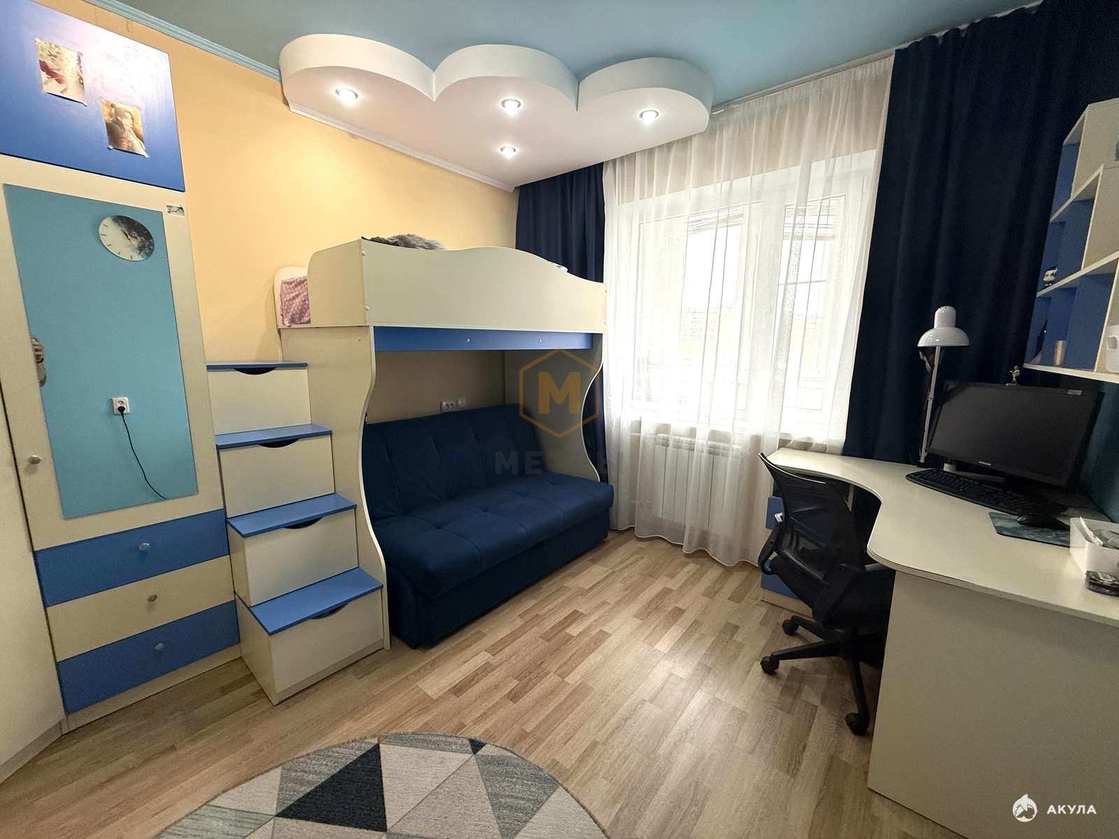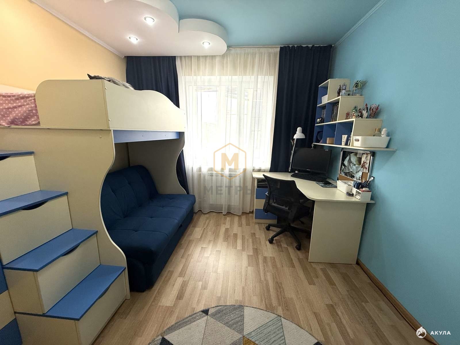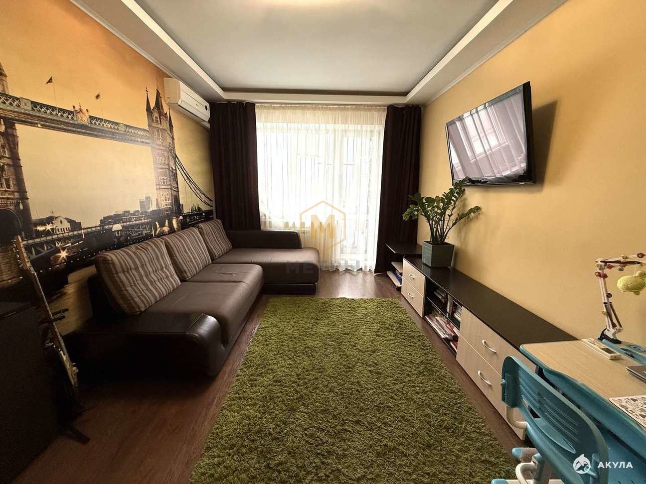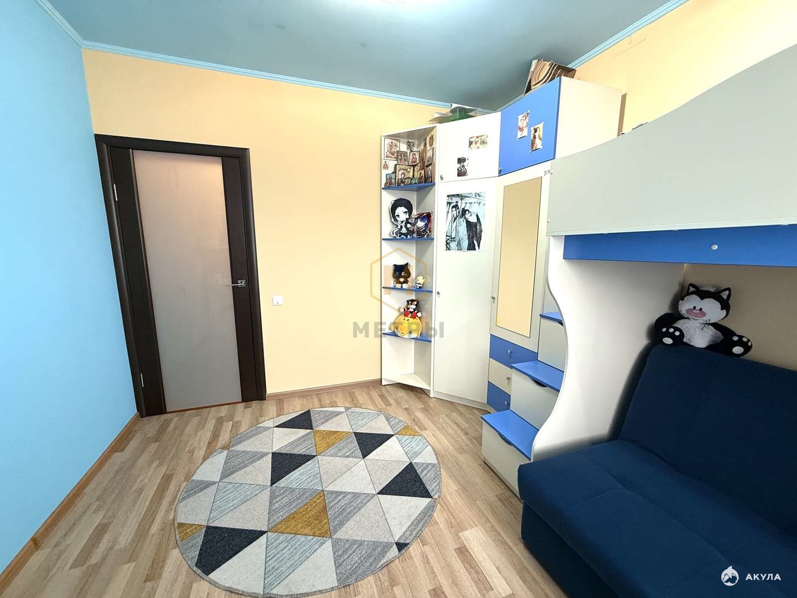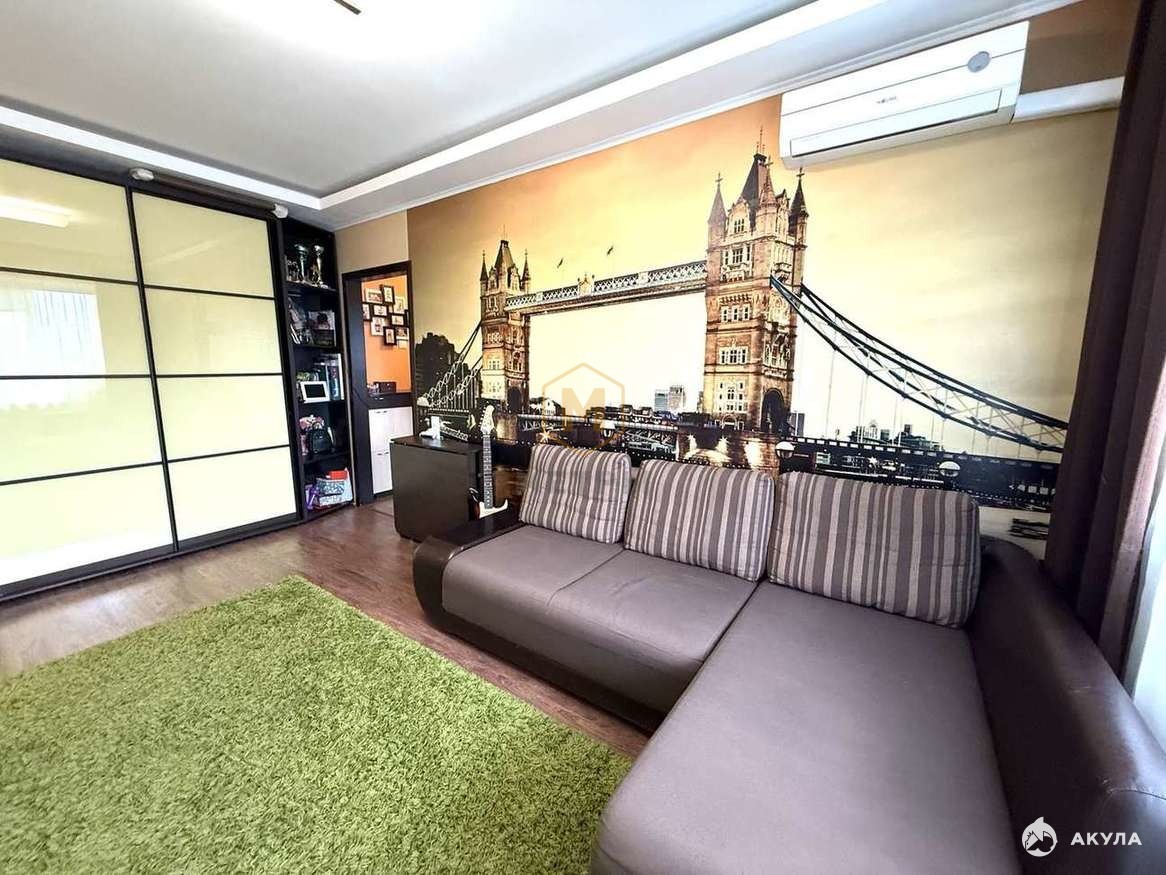 В квартире сделан хороший ремонт: на полу выложен ламинат, на стенах обои и декоративная штукатурка, потолки везде выровнены, ванная и туалет отделаны плиткой, . В квартира большой 6-метровый балкон с выходом их спальни, раздельный сан. узел.