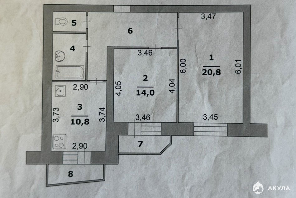 Планировка: Квартира имеет: - 2 комнаты (21 и 14 кв м); - раздельный санузел; - кухню площадью 10, 8 квадратных метров; - два балкона.