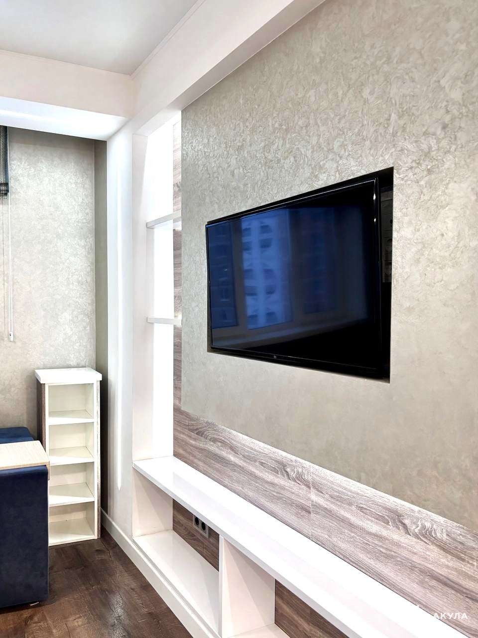 -Стены выровнены, частично отделаны декоративной штукатуркой;