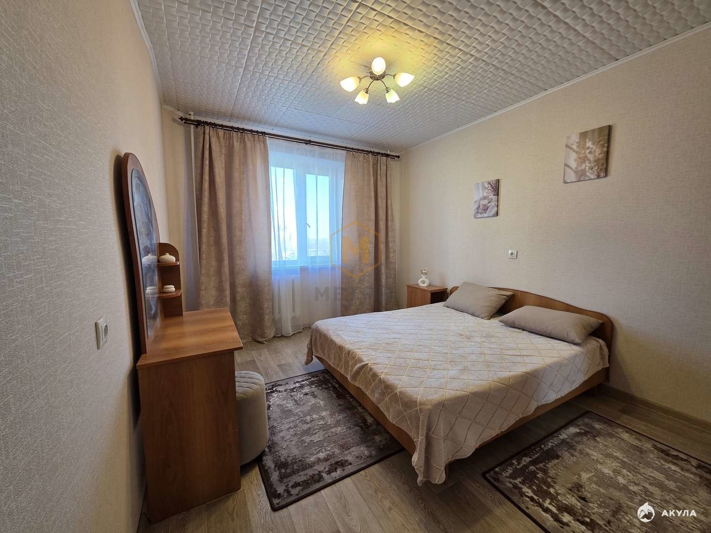 — На полу линолеум, стены оклеяны обоями, радиаторы чугунные, окна пластиковые.