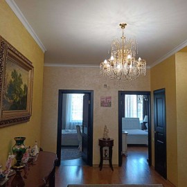 Квартира в 2 уровня, на первом уровне: входная группа-холл, кухня-гостинная, с/у и ванна, кабинет; на втором уровне: 3 изолированные спальни, балкон. Квартира с качественным ремонтом, полностью мебелированная. Имеется гардеробная комната. и большая лоджия с прекрасным видом...