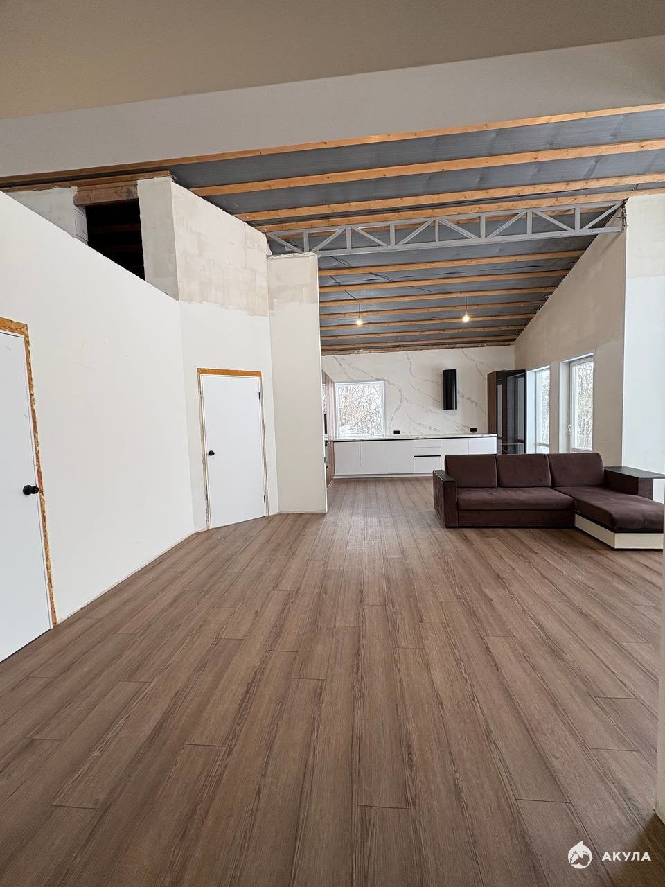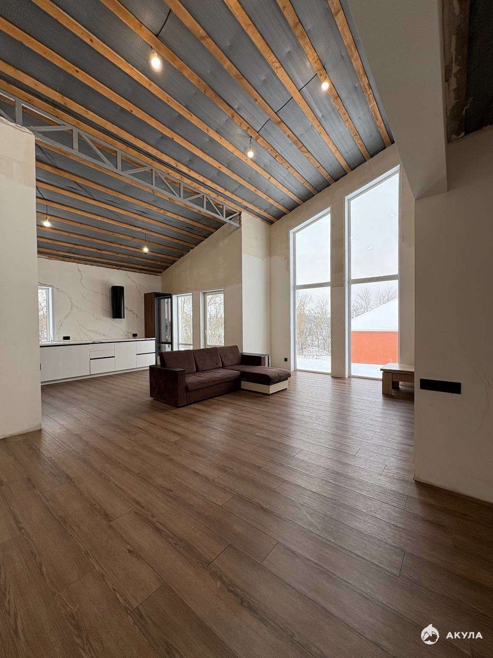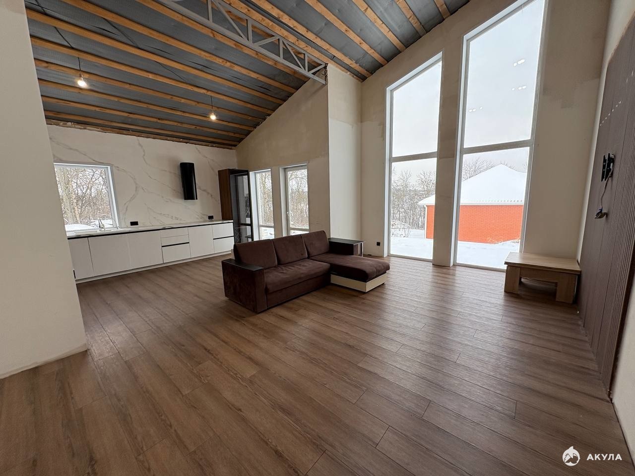 B продаже уютный дом 123, 5 кв.м возле леса, расположенный в с. Драгунское, в 15 минутах проезда до центра города! Дом 2022 года постройки, выполненный в скандинавском стиле. Материал стен - пеноблоки, облицовка - короед, крыша двускатная, кровля - металлочерепица, панорамное остекление, стены и потолок утеплены. Отопление: система - теплый пол по всему периметру дома. Коммуникации все центральные! Планировка: 3 изолированные комнаты 12, 31 кв.м, 12, 04 кв.м, 12 кв.м, большая мастер-спальня 14, 28 кв.м с сан. узлом и гардеробной, просторная кухня - гостиная 43, 37 кв.м с высокими потолками и панорамным остеклением, совмещённый сан. узел 6, 81 кв.м, котельная (прачечная) 5, 71 кв.м, просторный коридор 11, 80 кв.м. В доме имеется вся необходимая мебель. Во всех комнатах постелен кварц винил, стены выровнены, поклеены обои в жилых комнатах, установлен кухонный гарнитур, сан. узел весь в плитке. Ремонт сделан частично (требуется отделка стен, потолка и полный ремонт второго сан. узла в мастер-спальне). Большая часть стройматериалов куплена и хранится в доме. Дом расположен на участке 20 сот. ИЖС. Подъезд к участку асфальтирован. Тротуарная плитка куплена, но не уложена. Хорошее место для спокойного и комфортного проживания. Рядом расположены новые современные дома и коттеджи. Если вы устали от городской суеты, то приобретение этого дома будет радовать вас и всю вашу семью!