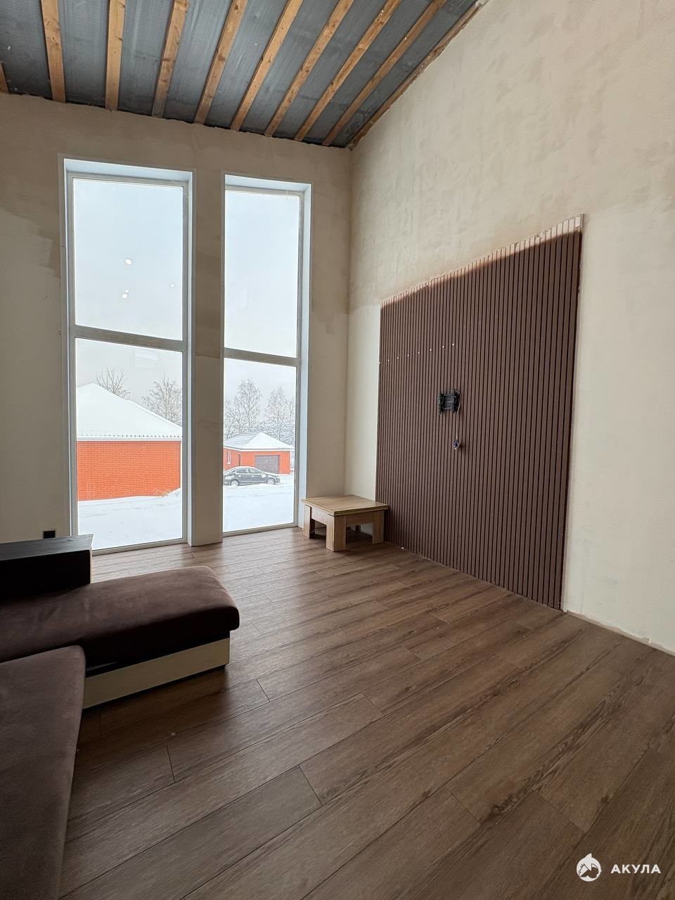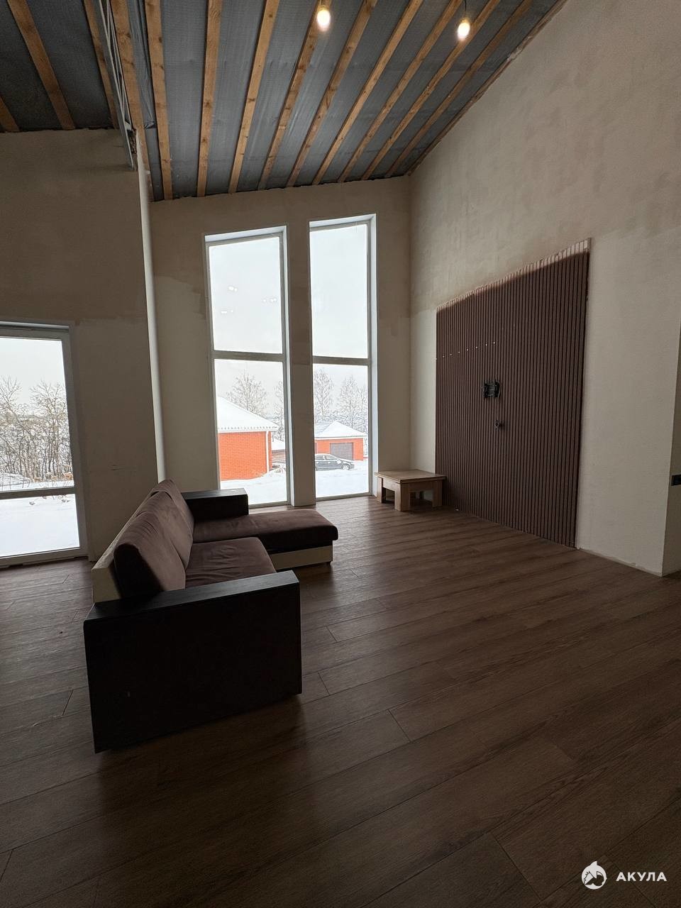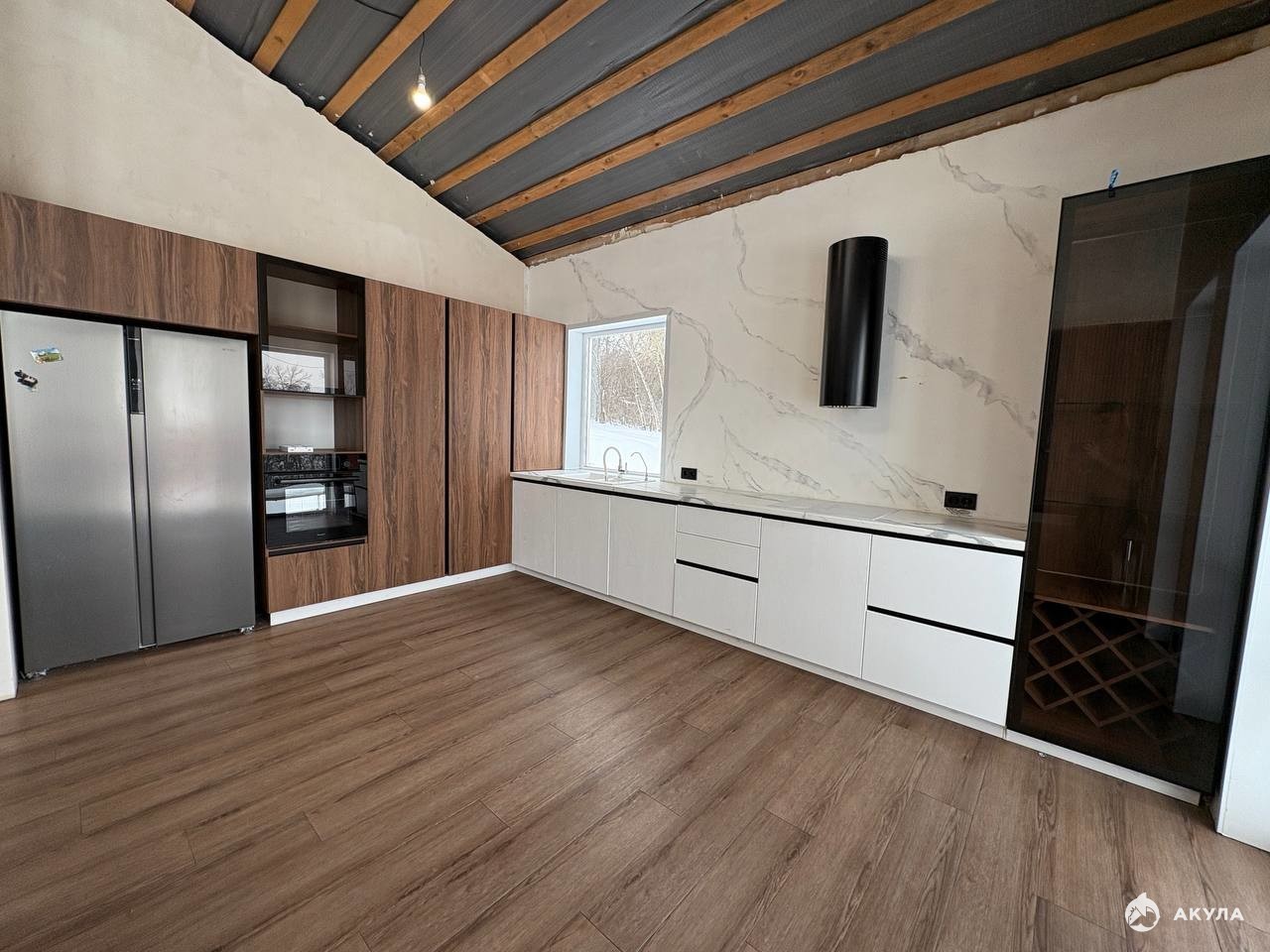 B продаже уютный дом 123, 5 кв.м возле леса, расположенный в с. Драгунское, в 15 минутах проезда до центра города! Дом 2022 года постройки, выполненный в скандинавском стиле. Материал стен - пеноблоки, облицовка - короед, крыша двускатная, кровля - металлочерепица, панорамное остекление, стены и потолок утеплены. Отопление: система - теплый пол по всему периметру дома. Коммуникации все центральные! Планировка: 3 изолированные комнаты 12, 31 кв.м, 12, 04 кв.м, 12 кв.м, большая мастер-спальня 14, 28 кв.м с сан. узлом и гардеробной, просторная кухня - гостиная 43, 37 кв.м с высокими потолками и панорамным остеклением, совмещённый сан. узел 6, 81 кв.м, котельная (прачечная) 5, 71 кв.м, просторный коридор 11, 80 кв.м. В доме имеется вся необходимая мебель. Во всех комнатах постелен кварц винил, стены выровнены, поклеены обои в жилых комнатах, установлен кухонный гарнитур, сан. узел весь в плитке. Ремонт сделан частично (требуется отделка стен, потолка и полный ремонт второго сан. узла в мастер-спальне). Большая часть стройматериалов куплена и хранится в доме. Дом расположен на участке 20 сот. ИЖС. Подъезд к участку асфальтирован. Тротуарная плитка куплена, но не уложена. Хорошее место для спокойного и комфортного проживания. Рядом расположены новые современные дома и коттеджи. Если вы устали от городской суеты, то приобретение этого дома будет радовать вас и всю вашу семью!