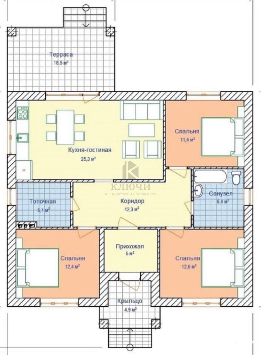 Дом в стадии строительства, готовность дома апрель 2026г. Коммуникации будут заведены в дом (свет, вода, газ), канализация-септик. Внутренняя отделка WhiteBox! В доме 3 спальные комнаты , просторная кухня-гостиная с выходом на террасу, санузел, котельная. Участок 15 соток. Фундамент: ленточный, глубиной 1, 2 м. Стены: газоблоки Аэробел. Крыша: Металлочерепица. Облицовка: облицовочный кирпич. Поможем с одобрением ипотеки, консультация БЕСПЛАТНО.